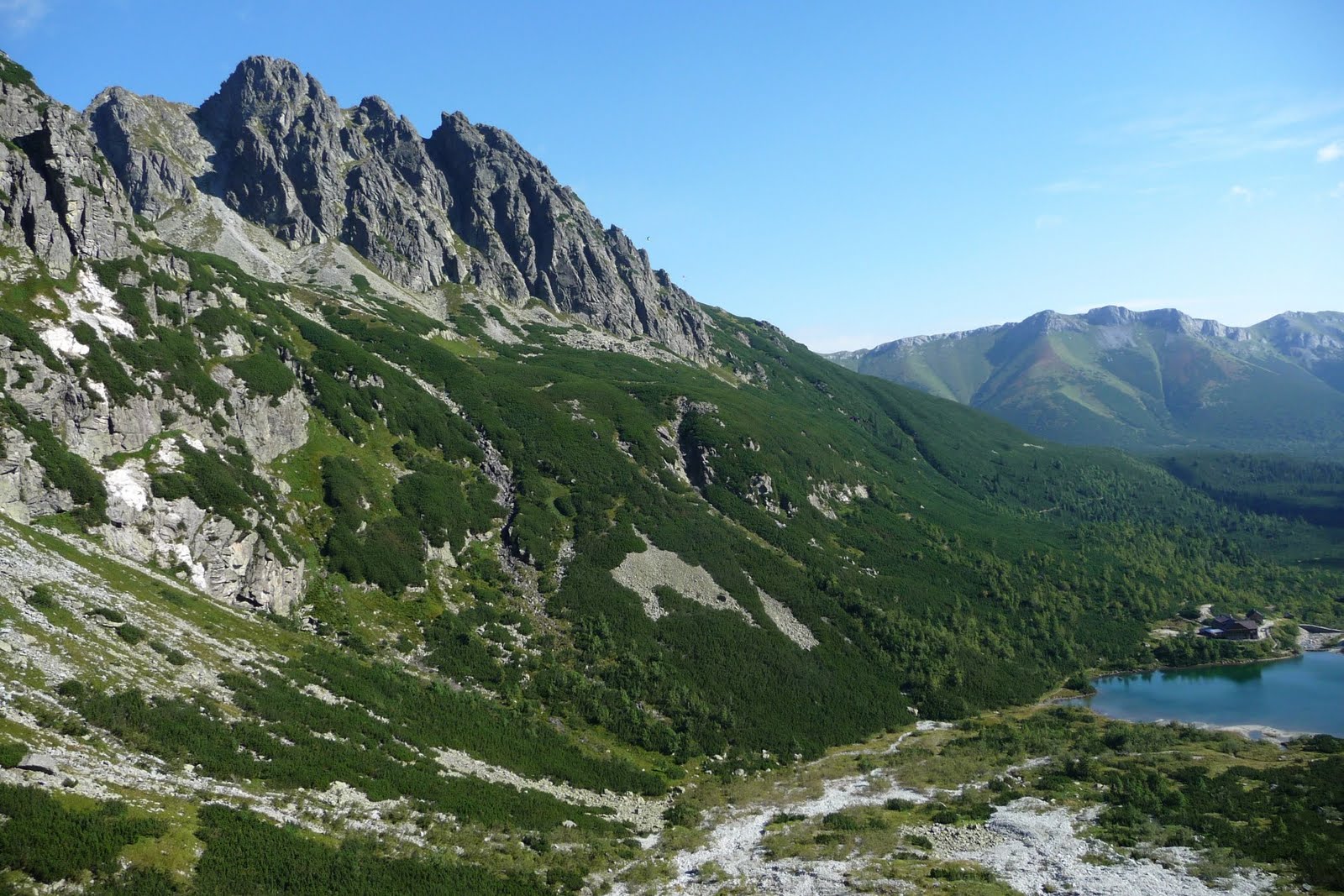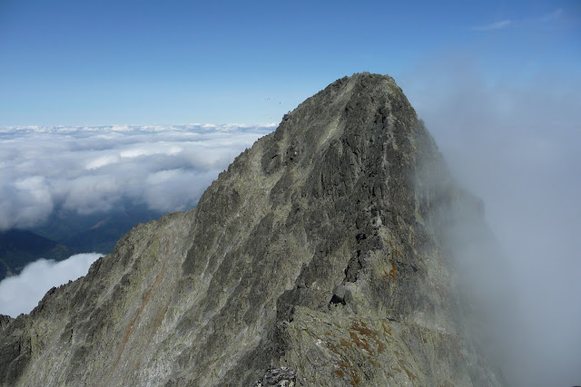 ZDE Oproti minule, ale tentokrát přálo počasí. Užil jsem si nádherných výhledu už při stoupání do kuloaru. Nahoře to také podle toho vypadalo. Hotový den otevřených dveří. Zástupy turistu proudících nahoru/dolů od Lomnického sedla. Nic nedělajíc si z nějakého zákazu a většina i bez přilby ač případný pád kamenu je tam dost pravděpodobný při takovém provozu.